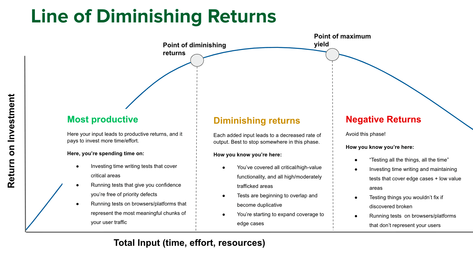 That said: more testing isn’t always better. At some point, you enter the plateau of diminishing returns:
