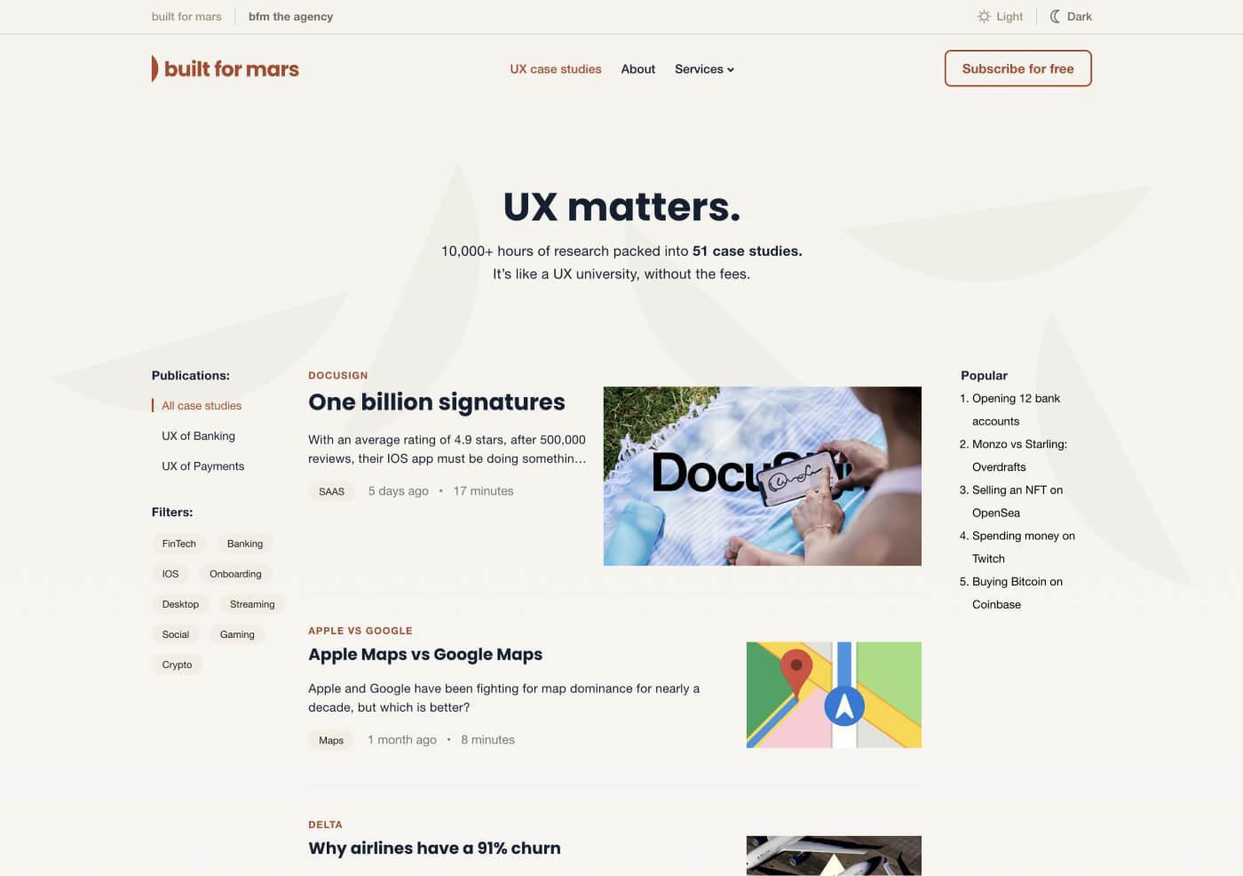 Also, the Built For Mars blog has excellent UX case studies of popular products, so you might want to check it out.