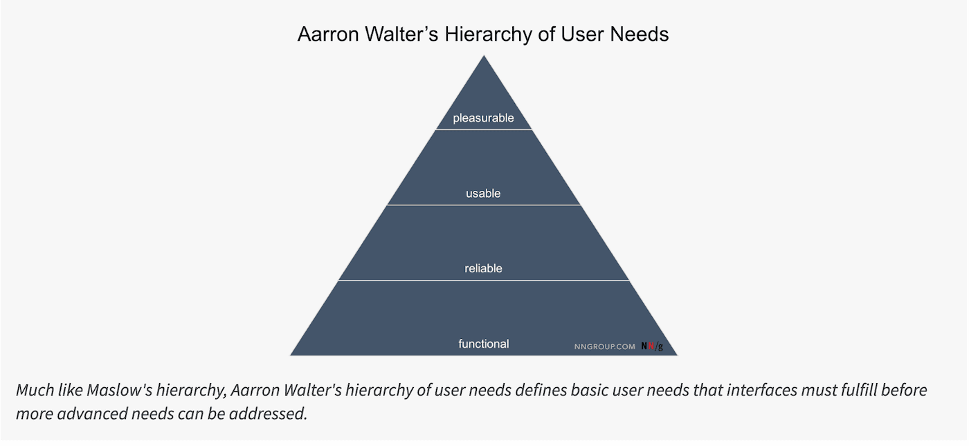 Aaron Walter's Hierarchy of User Needs. Source: Nielsen Norman Group.